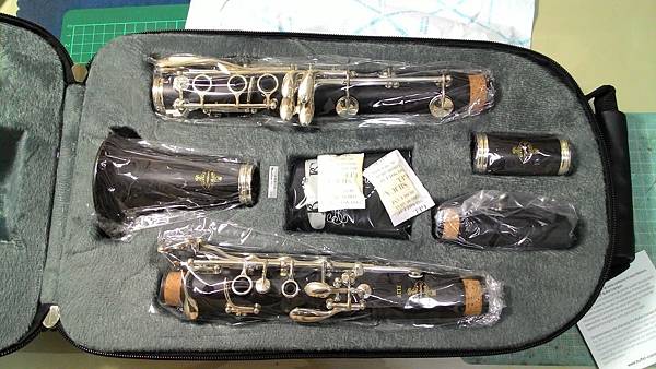 6. 樂器 – 拿開防潮紙,看到的是用透明塑膠袋裝的單簧管,因為用的透明塑膠袋很乾淨,所以樂器看起來就很高級,感覺舒服.