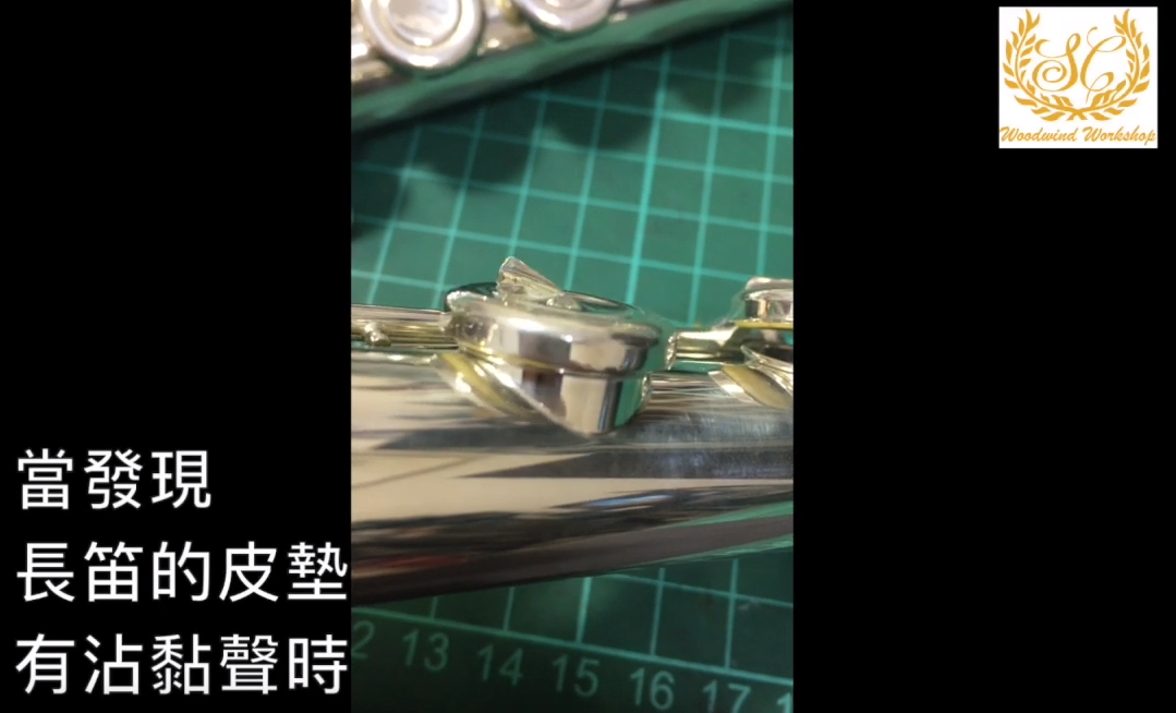 長笛使用一段時間後,長笛皮墊出現沾黏聲,表示皮墊受潮,可以使用粉紙暫時去除沾黏聲。使用方法請參考以下連結影片。